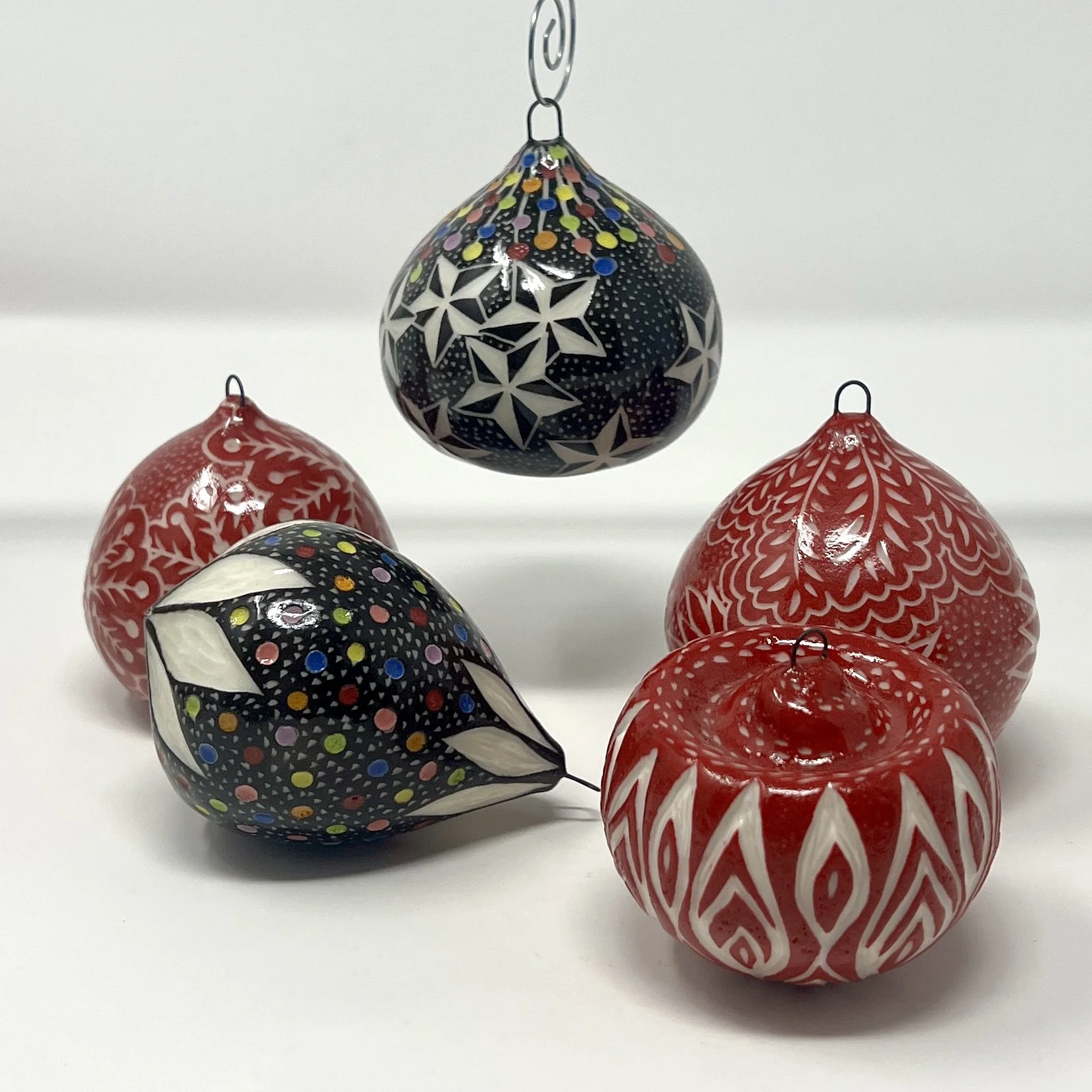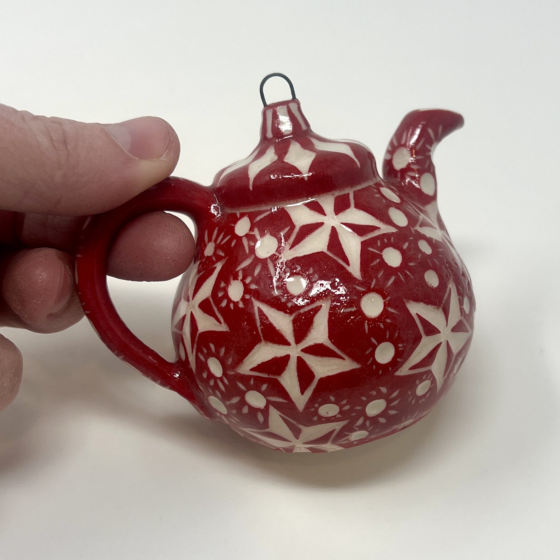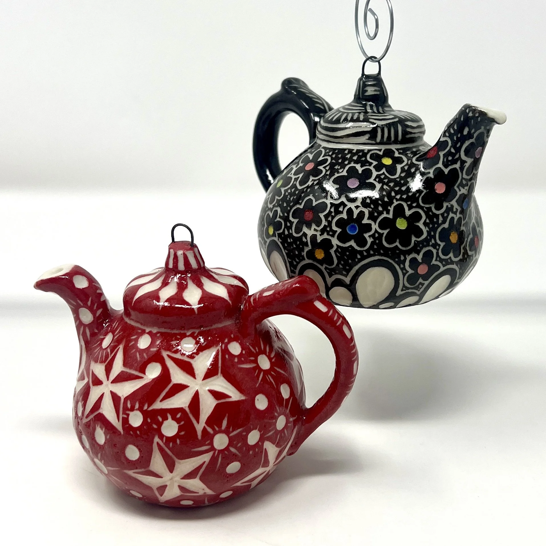 Teapot ornaments are non-functional, hollow and approximately 2.5" tall