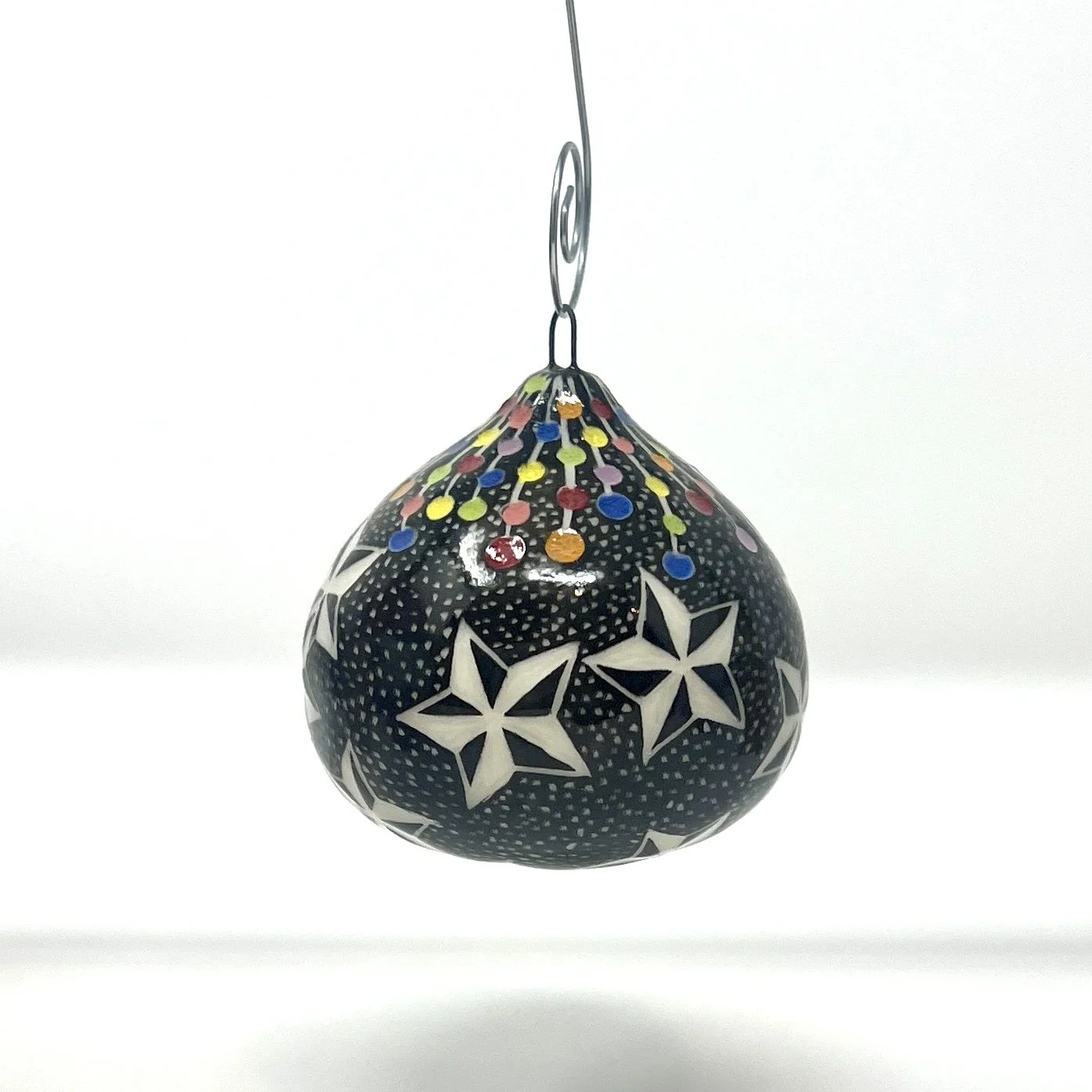 Bulb ornaments are hollow, roughly 2.5" at longest angle and weigh no more than 4oz.